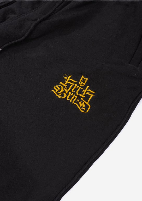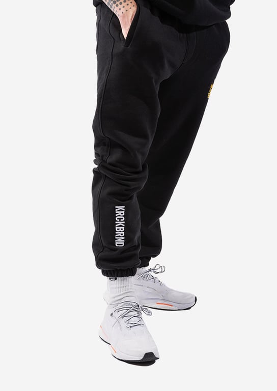 \nBlackletter Spring Pants fac partea din 1 generație de pantaloni din french terry de 400 g/m², dorind sa surprindem mereu comunitatea cu materiale versatile, metoda de personalizare a acestui produs consta in aplicarea broderiei cu un stil graffiti a denumirii brandului + logo-ul skull, de culoarea galbena, respectiv Krckbrnd pe alb, buzunare finisate cu fermoar in fata, 1 buzunar la spate , șiret cu cap metalic personalizat.