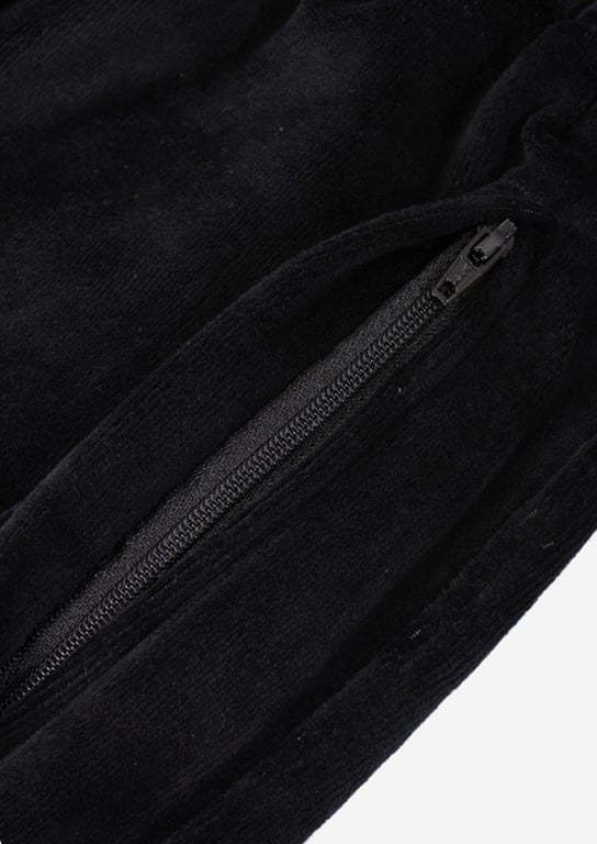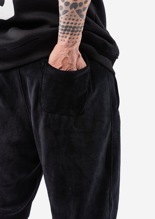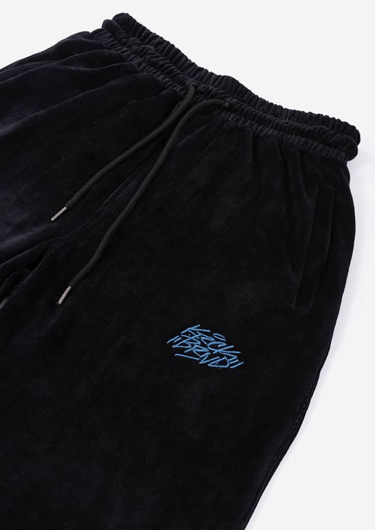 \nCreați special pentru relaxare si confort, din catifea sintetica (poliester, nailon , viscoză) de 230 g/m², buzunare finisate cu fermoar in fata, 1 buzunar la spate , șiret cu cap metalic personalizat, metoda de personalizare a acestui produs a constat in aplicarea a 2 broderii cu un stil de scris de mana a denumirii brandului Krck Brnd, de culoarea albastru petrol respectiv alba.