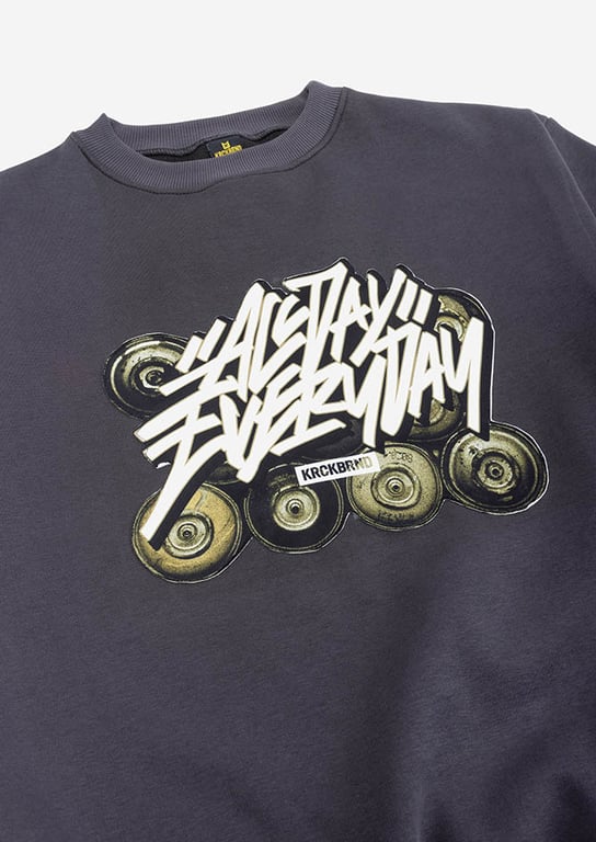 Your latest grey sweatshirt is here to stay, featuring a bold "ALL DAY EVERYDAY" digital print on the chest and graffiti-inspired artwork. This sweatshirt is perfect for urban strolls or gaming sessions and is designed for absolutely everybody. The grey color is so versatile it goes with all your wardrobe items, while the graffiti artwork cans add a unique and edgy touch. Only a few of these are made so don`t miss your chance to bag it up today!