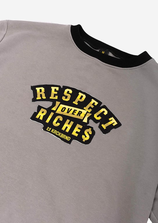 Have a go at this wonderful piece which completes our grey selection of comfy items. Its golden design sports a bold ”RESPECT OVER RICHES” lettering and a powerful message one shouldn`t easily forget. It was created for indoor sessions but is an absolutely great fit for exploring the great outdoors as well. The grey color is so versatile it goes with mostly all your wardrobe. Extremely few of these premium items are made so don`t think too much before adding this to your cart!