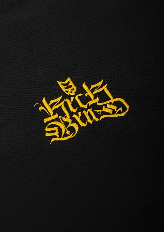 \nMetoda de personalizare a acestui produs consta in aplicarea broderiei cu un stil graffiti a denumirii brandului + logo-ul skull Krck Brnd, de culoarea galbena.