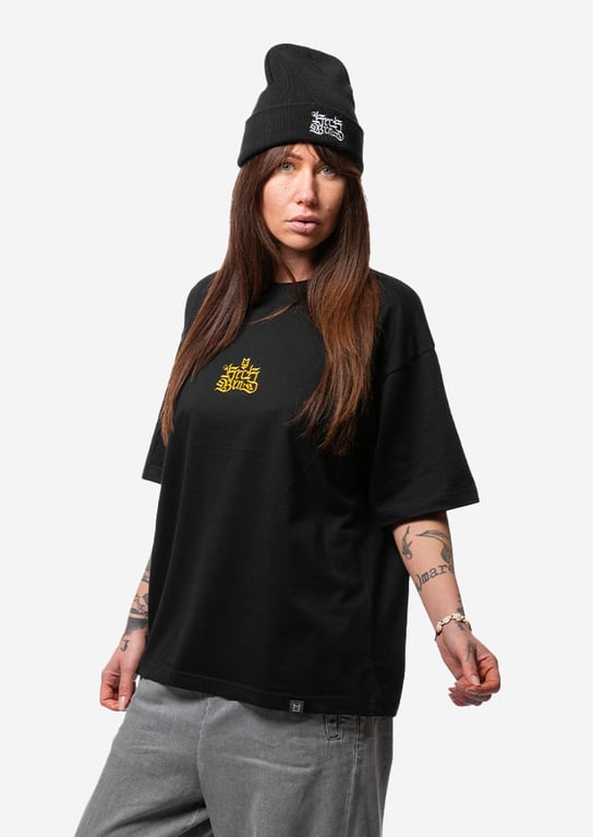 \nTricoul Blackletter mai are la baza cele 3 etichete ale brandului, cea hemtag (țesută) de la baza tricoului, cea cu mărimea produsului (țesută), respectiv eticheta de compoziție (printata).